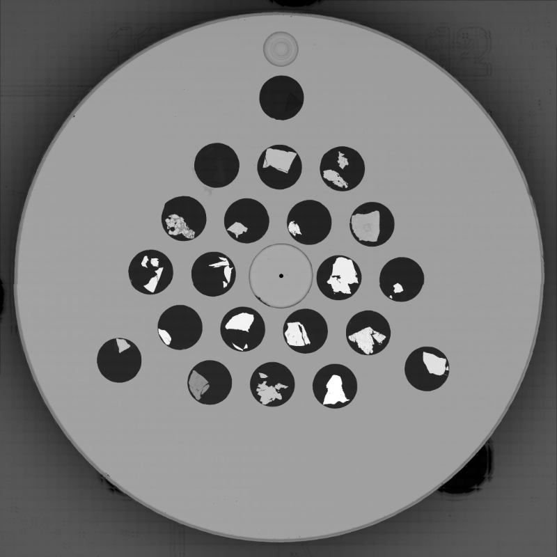 Rare Earths Standard for quantitative microanalysis. 21 rare-earth standards, including a Faraday Cup. Mounted and polished in a 24.9mm diameter stainless steel 316L block – 9 mm high, with M4 at the bottom.