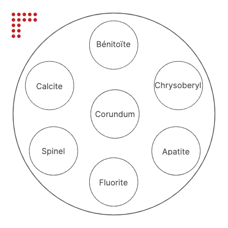 Cathodoluminescence reference mineral samples. It is mounted and polished in a standard 12.5 mm aluminum pin stub.